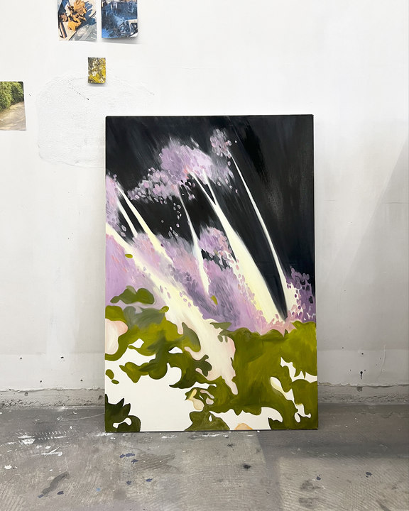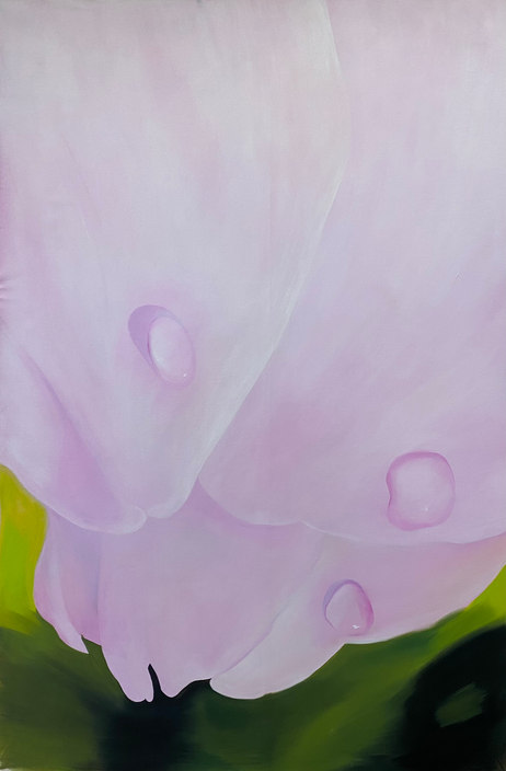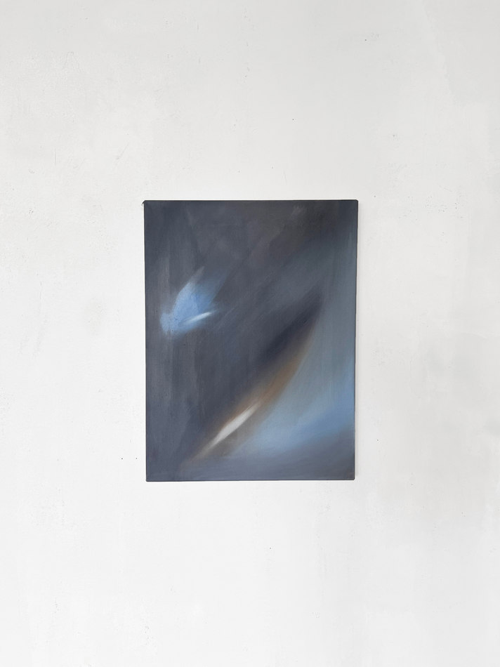 Feather meeting a dandelion, 35x49cm, oil on canvas, 2024