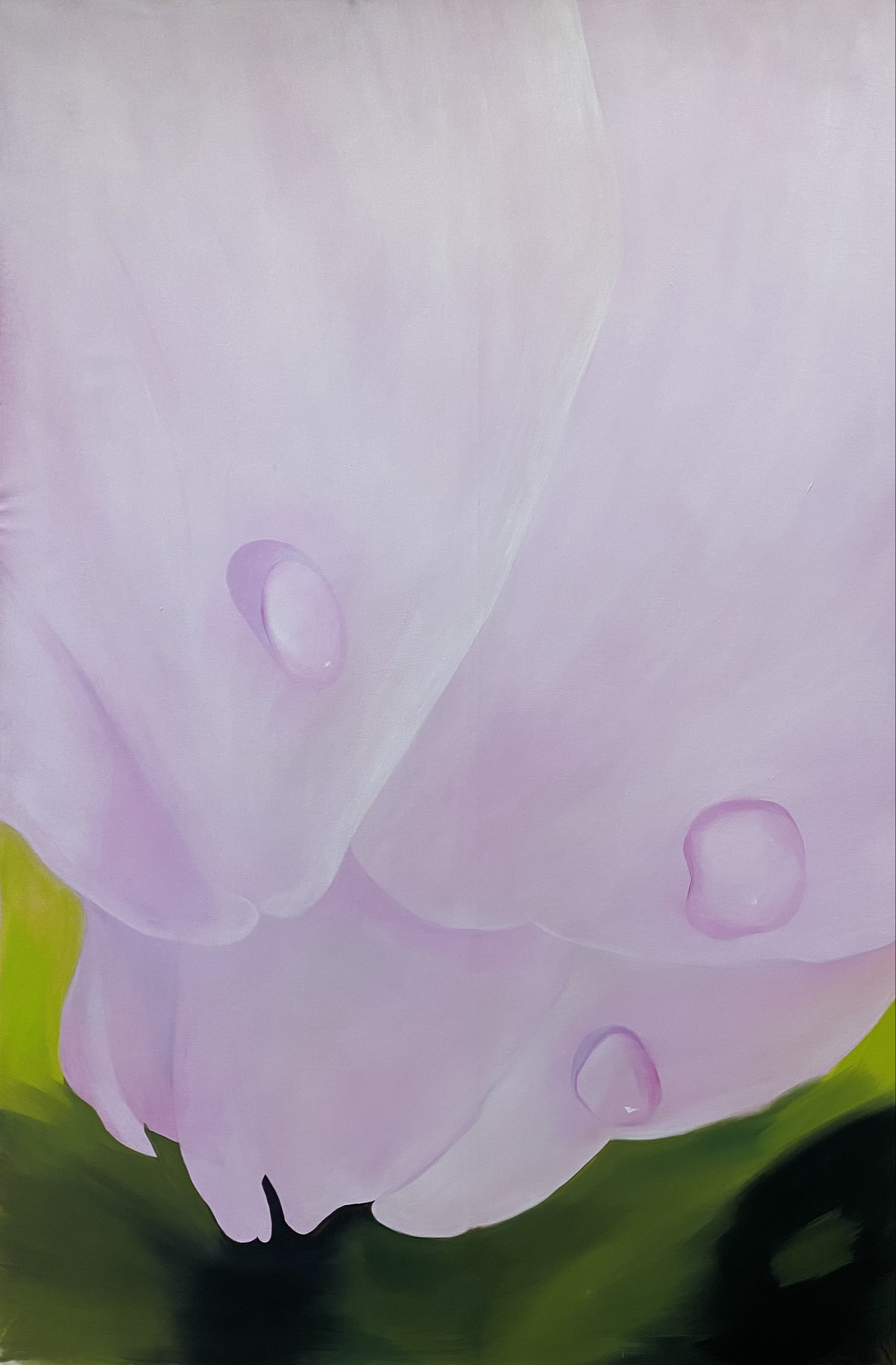Feather meeting a dandelion, 35x49cm, oil on canvas, 2024