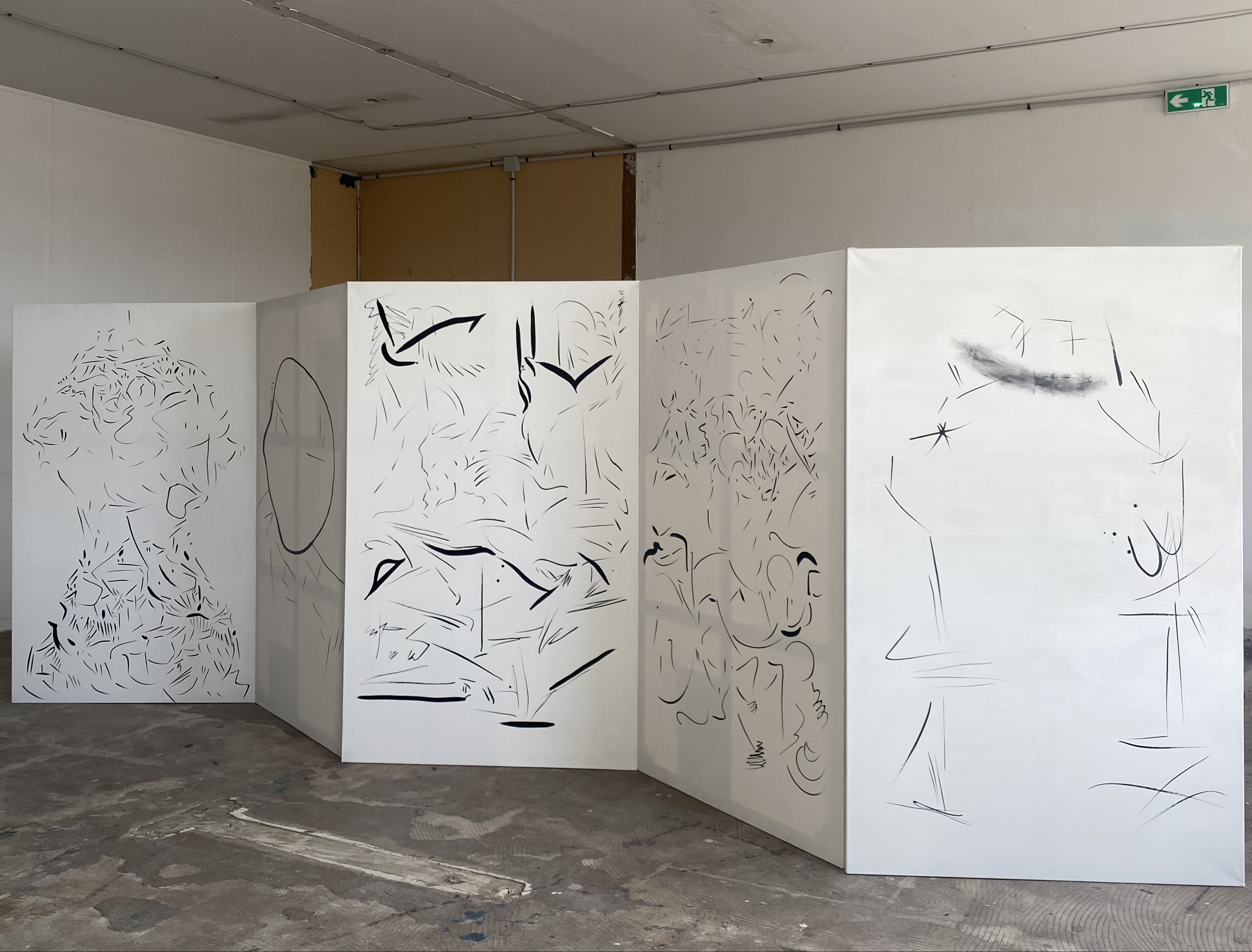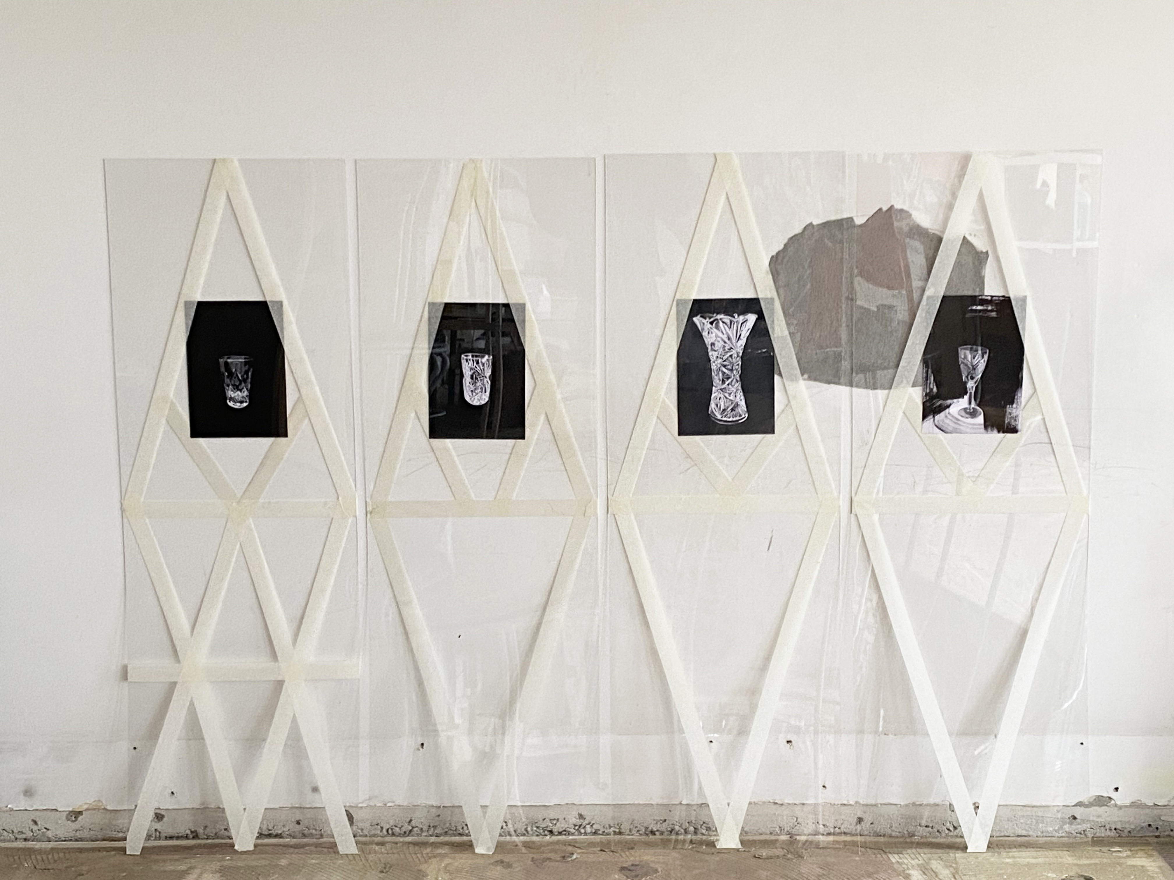 Reflecting burnt tanks, 120x180cm, acrylic on canvas, 2023